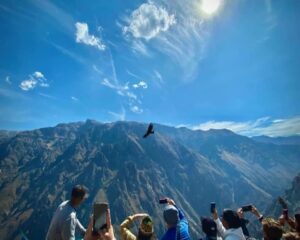 Another advantage of a two-day tour is the opportunity to visit the canyon’s most famous viewpoint at the best time of day. Early in the morning, travelers head to the iconic Cruz del Condor, where it is possible to observe the magnificent Andean condor gliding above the canyon cliffs. These giant birds use the rising thermal winds to soar effortlessly across the canyon, creating one of the most memorable wildlife experiences in South America.